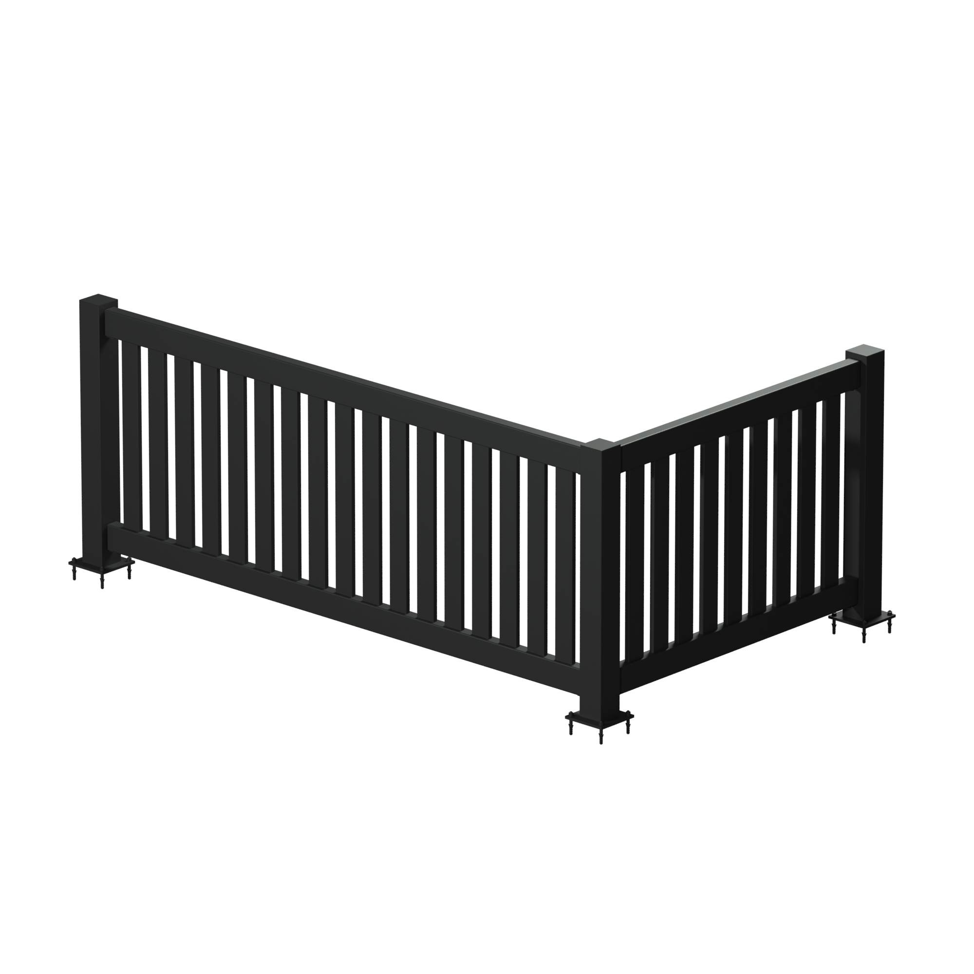 Let op: bij een breedte van 3131 mm of meer wordt de balustrade opgesplitst in 2 delen met 3 staanders. De poten en lengte van het hekwerk worden altijd gelijkmatig verdeeld.