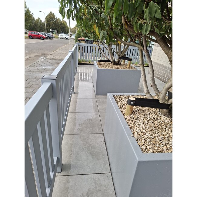 Het Hekwerk Leusden kenmerkt zich door rechte lijnen en verticale spijlen, waardoor een open maar veilige tuinafscheiding ontstaat. Door te kiezen voor een duurzame galvanisering in combinatie met de gepoedercoate afwerking is het hekwerk weerbestendig en onderhoudsarm. In combinatie met bijpassende stalen plantenbakken in dezelfde kleur ontstaat een stijlvol en harmonieus geheel.