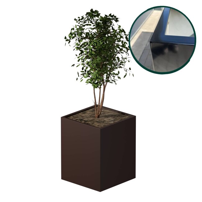 Deze metalen bloembak heeft een afmeting van 80x80x100 cm, ook wel 800x800x1000 mm. Ze zijn altijd vervaardigd uit hoogwaardig 2 mm dik zincor metaal, wat zorgt voor extra stabiliteit en een luxe uitstraling. De plantenbakken zijn volledig uit 1 stuk gemaakt en netjes afgewerkt zodat dat je geen naden ziet.
